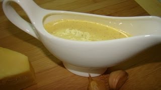 В классический рецепт сырного соуса входят такие ингредиенты как: молоко, мука, сыр, сливочное масло и бульон.