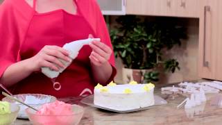 Для украшения тортов кондитерский крем наносят на поверхность изделия, а затем наносят рисунок или добавляют другие фигурные заготовки.